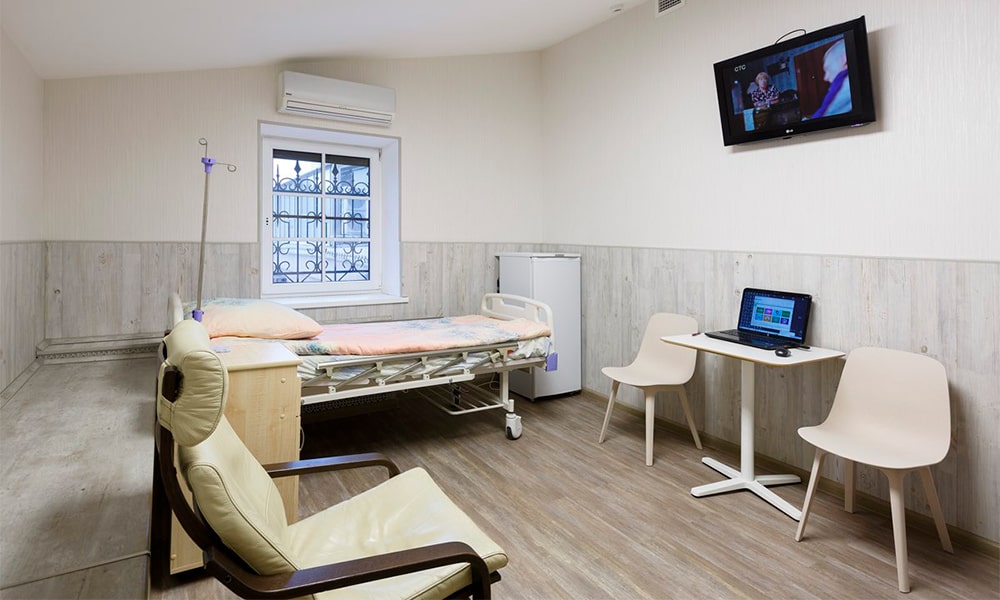 Уютная 4-местная палата со всей необходимой мебелью, в котором могут разместиться три или четыре человека. В палате есть все необходимое для комфортного пребывания.